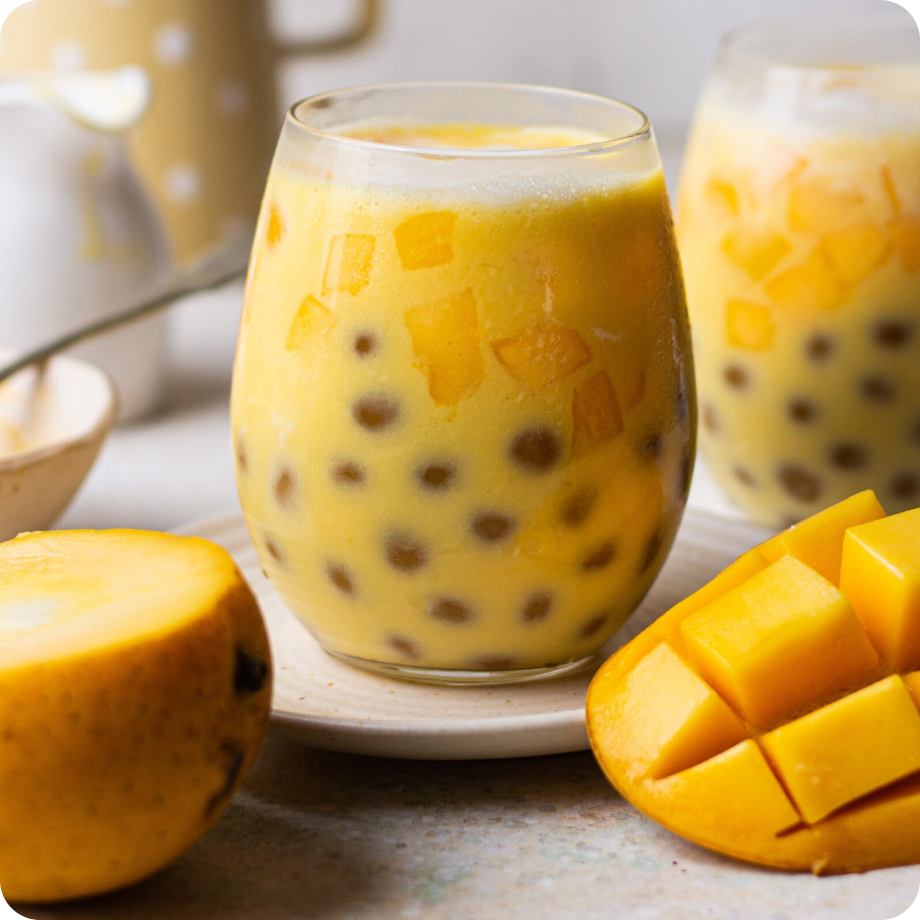 Colorful, chewy jelly pieces with a mildly sweet flavor, adding a playful texture and fun visual appeal to any drink.