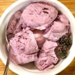 A creamy homemade ice cream using fresh picked blackberries with chocolate chips.