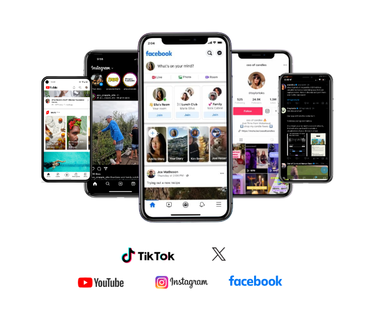 Reach customers across platforms like Instagram, YouTube, Facebook, and TikTok.